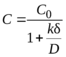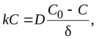 При постоянных С0 и δ концентрация С на границе раздела флюс – металл определяет как скорость диффузии (8.100), так и скорость химической реакции (8.101). В установившемся процессе концентрация С определяется из условия: