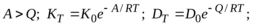 Энергия активации диффузии Q обычно всегда ниже, чем энергия активации химической реакции А, и при высоких температурах наиболее вероятен диффузионный режим. В самом деле: