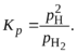 Для процесса диссоциации, например водорода (см. (9.1)), при постоянном давлении р она равна отношению парциальных давлений продукта диссоциации