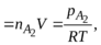 Концентрация газа в газовой смеси может быть представлена в соответствии с уравнением состояния газа в виде выражения A2г =