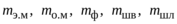 – массы соответственно электродного металла, основного металла, флюса, металла шва и шлака;