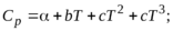 Для удобства использования при расчетах температурную зависимость теплоемкости при постоянном давлении выражают одним из двух уравнений:
