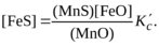 Преимущество реакции (9.83) по сравнению с реакцией (9.81) состоит в том, что константа равновесия Kс растет с увеличением температуры, т. е. с ростом температуры реакция сдвигается в сторону большего выхода (MnS) и [FeO].