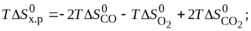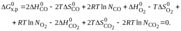 – сумма стехиометрических коэффициентов уравнения реакции, причем коэффициенты исходных веществ берутся со знаком минус (2CO2
