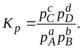 выраженную через парциальные давления реагирующих газов, принято отношение произведения степеней парциальных давлений продуктов реакции C, D к произведению степеней парциальных давлений исходных продуктов A, B, причем показателями степеней являются соответствующие стехиометрические коэффициенты, т. е.