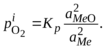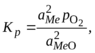 Если МеО и Me – чистые конденсированные вещества, то единственным газообразным продуктом в реакции (8.67а) является кислород. В таких гетерогенных системах константа равновесия определяется только парциальным давлением кислорода, т. е.