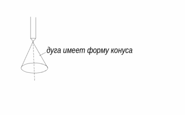 применяется электрод малого диаметра (0,6 до 2 мм), анодное пятно определяется диаметром капли, то есть плотность тока резко возрастает и нет «блуждающей» дуги