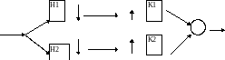 . Рассмотрим следующую схему, изображенную на рисунке. Входной сигнал подается на два фильтра. Стрелки вниз означают выбрасывание сигнала с нечетными номерами, а стрелки вверх - включение нулевого сигнала между двумя приинятыми. После этого полученные сигналы фильтруются двумя фильтрами и складываются.