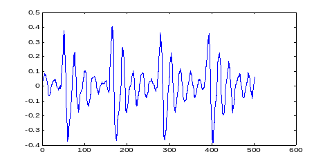 исходная последовательность "похожа" на исходную. В качестве примера рассмотрим фрагмент звукового файла с записью звука "а". Этот сигнал не является периодическим в математическом смысле слова, однако, визуально такая периодичность просматривается. Значения периода находятся по максимумам соответствующей автокорреляционной функции. Найдем преобразование Фурье от