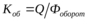 Коэффициент оборачиваемости, т.е. количество оборотов оборотных средств за расчетный период, определяется следующим образом: