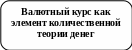Валютный курс в этом случае отражает равновесное состояние национальных экономик, представленное через равенство средневзвешенной ценовой оценки всей товарной массы сопоставляемых стран. И как следствие, валютный курс определяется относительной стоимостью денег двух стран, которая зависит от уровня цен, а последний в свою очередь — от количества денег в обращении.