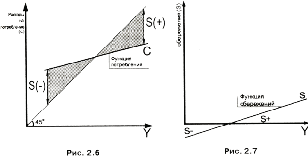 Рост дохода за пределы указанной величины позволит не только увеличить потребление, но и сберегать часть дохода (S). Уменьшение дохода ведет к тому, что приходится расходовать сбережения предыдущих периодов (отрицательные сбережения).