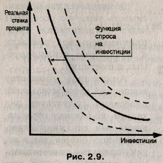 Из рис. 2.9 видно, что между ставкой процента и объемом требуемых инвестиций существует обратная связь.