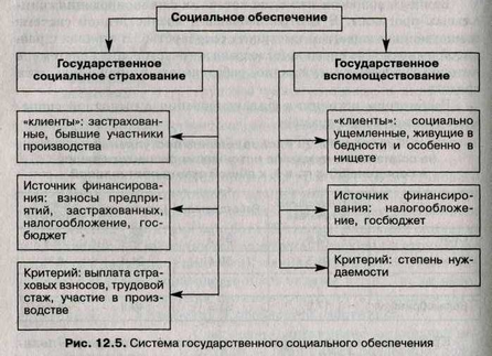 Социальная помощь, как правило, осуществляется по трем основным каналам: государственному социальному страхованию, государственному вспомоществованию, частной системе социального страхования.