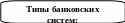 | В истории известно несколько типов банковских систем различных стран: - двухуровневая банковская система (центральный банк и система коммерческих банков); - централизованная монобанковская система; - уникальная децентрализованная банковская система — Федеральная резервная система США. |