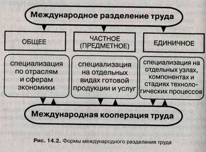 М еждународные экономические отно­шения строятся на международном раз­делении труда (МРТ) (рис. 14.2).