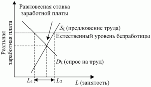 жесткость заработной платы, которая порождает вынужденную безработицу.