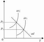Инфляция - это снижение покупательной способности денег в первую очередь из-за быстрого роста цен. Существует два основных типа инфляции: скрытая и открытая. В основе обоих типов лежит нарушение равновесия между стоимостью всей массы товаров и услуг и противостоящей ей денежной массой. Скрытая инфляция проявляется через товарный дефицит и, как правило, имеет место в нерыночной экономике. Открытая инфляция проявляется главным образом через рост цен на товары и услуги. Бумажные деньги обесцениваются, возникает избыточная денежная масса, не обеспеченная соответствующим количеством товаров и услуг. В то же время нельзя любой рост цен рассматривать как инфляцию. Повышение цен может быть неинфляционным и происходить под воздействием других причин. В основе механизма открытой инфляции лежат адаптивные инфляционные ожидания, инфляция издержек и инфляция спроса. Адаптивные инфляционные ожидания представляют собой психологический феномен, склонность, образ мыслей, определяющие поведение субъектов хозяйственной жизни. Адаптивные ожидания формируются экономическими агентами на основе информации о настоящих и предшествующих уровнях инфляции, при этом большее значение придается недавнему опыту. Инфляция издержек возникает как следствие повышения средних издержек на единицу продукции и снижения совокупного предложения. Этот тип инфляции приводит к стагфляции, т. е. к одновременному росту инфляции и безработицы на фоне спада производства (рис. 14.3). При прежнем уровне совокупного спроса снижение совокупного предложения приводит к росту среднего уровня цен и увеличению темпов инфляции.