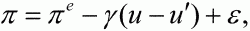 где π и πe – соответственно фактический и ожидаемый темпы инфляции; u и u' - фактический и естественный уровни безработицы соответственно; γ – внешний ценовой шок; ε – эмпирический коэффициент.