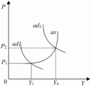 Смещение кривой совокупного спроса вправо от AD1 к AD2 ведет к росту цен, если экономика находится на промежуточном или классическом отрезке кривой совокупного предложения. Основные причины избытка совокупного спроса могут быть связаны с повышением:
