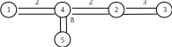 Q14=2, Q24= 2, Q23=3, Q12=4, Q34=5, Q13=6, Q45=8,