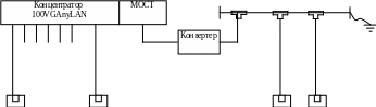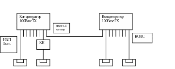 Сеть строится на базе концентраторов, отвечающих стандарту