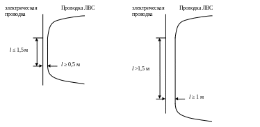 При прокладке кабеля следует разделять электрическую проводку и проводку кабеля. Недопустимо располагать их в одном коробе. Расстояние между этими проводками должно быть более 10 см, если длина их параллельной проводки меньше 1,5 м. И более 1 м, если длина их параллельной проводки более 1,5 м.