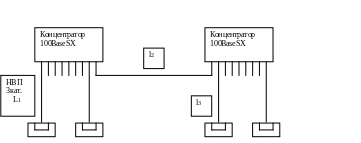 6. Построение сетей 100BaseFX на базе стековых концентраторов.