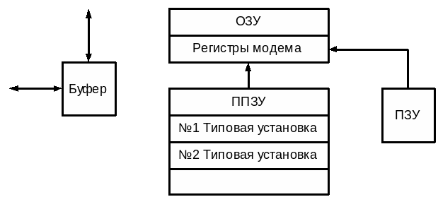 ОЗУ – оперативное запоминающее устройство. В нем находятся регистры, в которые заносится текущая рабочая установка.