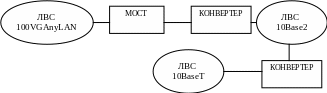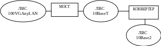 Схема соединения 100VGAnyLAN и 10BaseT.