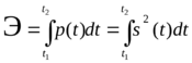 (интеграл от мгновенной мощности p(t) на интервале [t1, t2]). Или, в соответствии с Error: Reference source not found, энергия сигнала