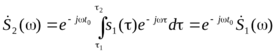 Новый сигнал s2(t) существует на интервале от t1+t0 до t2+t0. Спектральная плотность S2(), в соответствии с Error: Reference source not found,