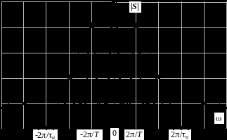 Таким образом, при частотах =k2/T модуль спектральной плотности пачки в N раз больше модуля спектра одиночного импульса. Это объясняется тем, что спектральные составляющие различных импульсов с указанными выше частотами складываются с фазовыми сдвигами, кратными 2.