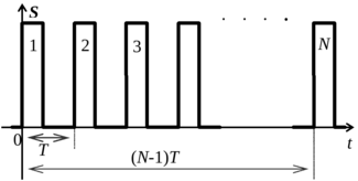 Для группы из N импульсов, в соответствии с принципом линейного суммирования спектров, при сложении сигналов спектральная плотность:
