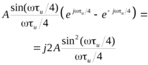 Спектральная плотность положительного прямоугольного импульса c длительностью u/2 и амплитудой 2A/и, по аналогии с формулой Error: Reference source not found и с учетом сдвига середины импульса на время u/4 относительно t=0: