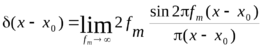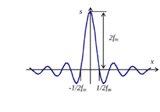 , площадь которого равна единице, амплитуда равна 2fm (при x=0). Длительность импульса (главного лепестка) обратно пропорциональна параметру fm.