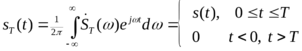 Обратное преобразование Фурье, примененное к текущему спектру, воспроизводит функцию sT(t), равную сигналу s(t) на промежутке от t=0 до t=T и равную нулю за пределами этого промежутка: