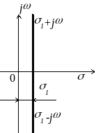 В выражении Error: Reference source not found интегрирование ведется по действительной оси , а в выражении Error: Reference source not found - по прямой, проходящей параллельно мнимой оси j на расстоянии 1 вправо от этой оси. Значение постоянной 1 определяется характером подынтегральной функции в Error: Reference source not found: путь интегрирования должен проходить правее полюсов этой функции.
