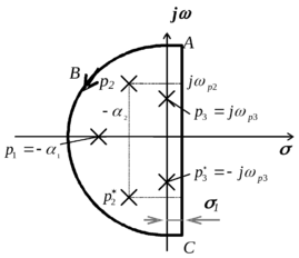 Итак, вычисление интеграла Error: Reference source not found сводится к определению вычетов в полюсах подынтегральной функции. На Рис. 3 .5 показано расположение полюсов для следующих функций времени:
