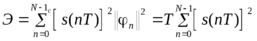 Энергию и среднюю мощность сигнала нетрудно выразить через заданную последовательность временных выборок. Используя формулы Error: Reference source not found, Error: Reference source not found и равенство ||n||2=T, получаем: