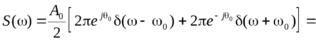 Эта функция равна нулю для всех частот, кроме =0 и =-0, при которых S() обращается в бесконечность. Как и следовало ожидать, гармоническому колебанию с конечной амплитудой соответствует бесконечно большая спектральная плотность при дискретных частотах 0 и -0. В частности, приравнивая 0 нулю, получаем спектральную плотность постоянного сигнала A0: