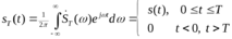 Обратное преобразование Фурье, примененное к текущему спектру, воспроизводит функцию sT(t), равную сигналу s(t) на промежутке от t=0 до t=T и равную нулю за пределами этого промежутка: