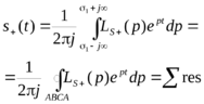Тогда в первом случае для t>0 (дуга в левой полуплоскости), контур интегрирования охватывает все полюсы подынтегральной функции (лежащие левее прямой (1-j, 1+j)), и в соответствии с теорией вычетов, интеграл Error: Reference source not found определяется как сумма вычетов в
