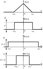 2) спектральная плотность функции 0(t) равномерна в полосе частот ||<m и равна T=1/2fm=/m. Так как функция n(t) отличается от 0(t) только сдвигом по оси времени на nT, то спектральная плотность функции n(t):