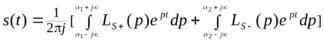 В заключение рассмотрим правила перехода от изображения Лапласа к преобразованию Фурье (имеется в виду одностороннее преобразование Лапласа). Если на оси j функция Ls(p) не имеет полюсов, то для такого перехода достаточно в Error: Reference source not found положить 1=0, то есть прейти от переменной p к переменной j.