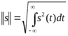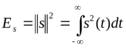 Именно такая энергия выделяется в резисторе с сопротивлением 1 Ом, если на его зажимах существует напряжение s(t).