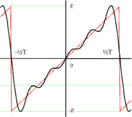 На Рис. 3.5 представлено формирование меандра суммой 1-ой и 3-ей гармоник, а на Рис. 3.6.- сумма 1-ой, 3-ей и 5-ой гармоник.