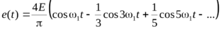 Для конечной суммы ряда, с увеличением числа суммируемых гармоник, сумма ряда приближается к функции e(t) всюду, кроме точек разрыва функции, где образуются выбросы. При n величина этого выброса равна 1.18Е, то есть сумма ряда отличается от заданной функции на 18%.