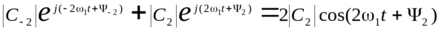 Смысл удвоения коэффициентов Фурье Cn в тригонометрическом ряде при n1 становится ясным, если представить себе сумму двух векторов равной длины и с противоположными аргументами (векторы вращаются с одинаковой скоростью n1, но в разные стороны для положительных и отрицательных частот), и вычислить проекцию этой суммы на ось абсцисс.