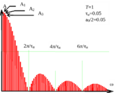 На Рис. показан спектр импульсной последовательности при Т=1, и=0.05.